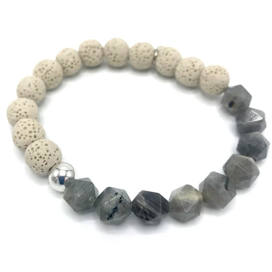 Men’s Hexagon Labradorite/ Natural Lava Stone / Sterling Silver