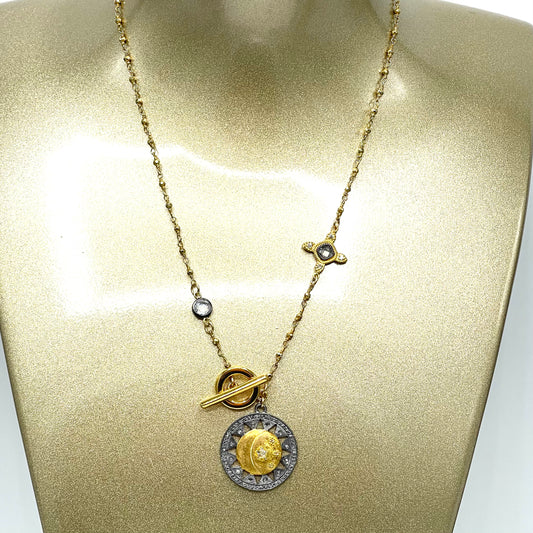 New Ocean Jasper Bracelet with 22KT Medallion Charm and Sand Tassel