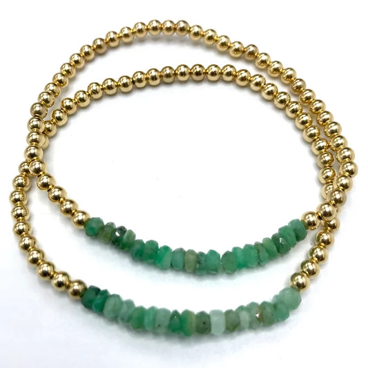 Emerald 3mm Gemstone GF Beaded Bracelet