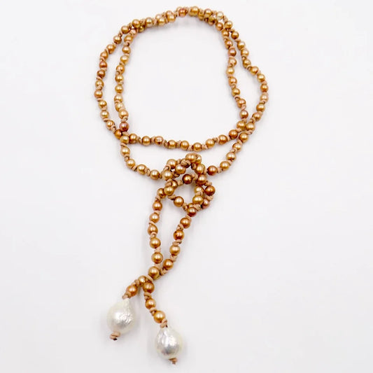 Freshwater and Barouque Pearls with Leather Lariat Necklace
